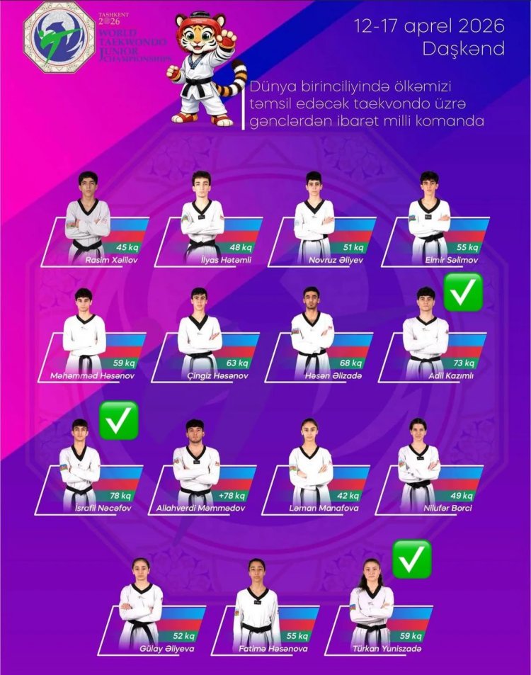 Azərbaycanın gənc taekvondoçuları Özbəkistanın paytaxtı Daşkənddə təşkil olunacaq dünya birinciliyində iştirak edəcək.