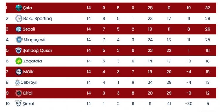 Futbol üzrə Azərbaycan 1-ci liqasında 14-cü tura yekun vurulub.