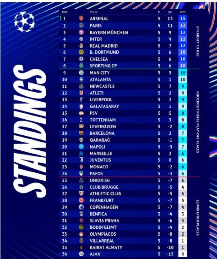 UEFA Çempionlar Liqasının Liqa mərhələsində 5-ci tura yekun vurulub.