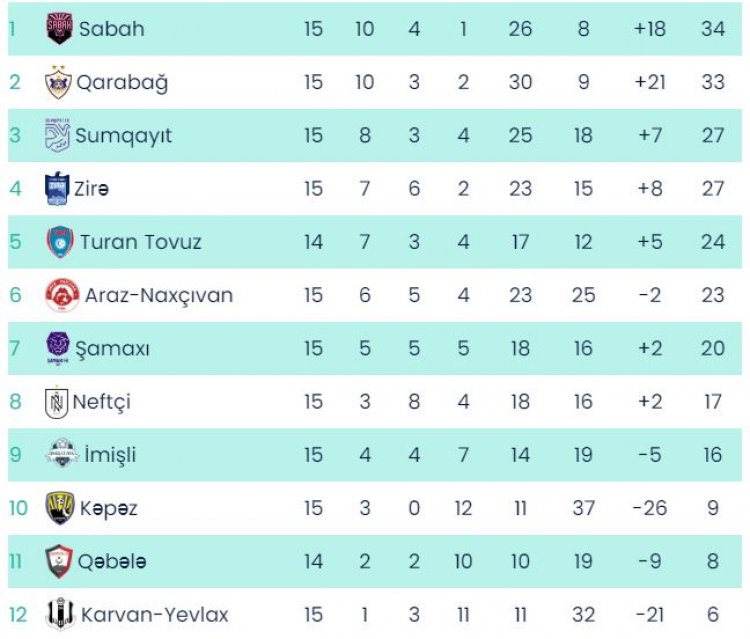 "Sabah" "Qarabağ"ı məğlub edərək turnir cədvəlində 1-ci yerə qalxdı
