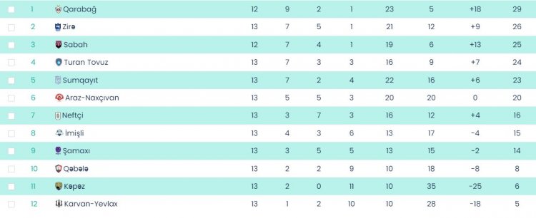 Xatırladaq ki, turun əvvəlki görüşlərində "Zirə" "Kəpəz"i (2:0), "Sabah" "İmişli"ni (3:0), "Qarabağ" isə "Karvan-Yevlax"ı (2:0) məğlub edib.