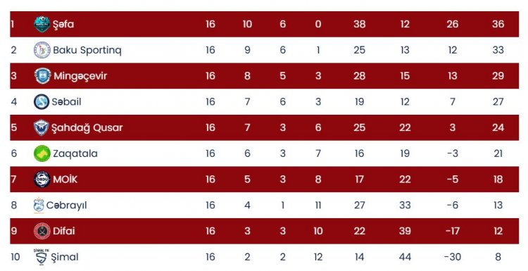 Futbol üzrə Azərbaycan 1-ci liqasında 16-cı tura yekun vurulub.