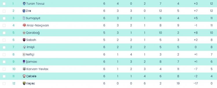 Azərbaycan Premyer Liqasında 6-cı tura yekun vurulub.