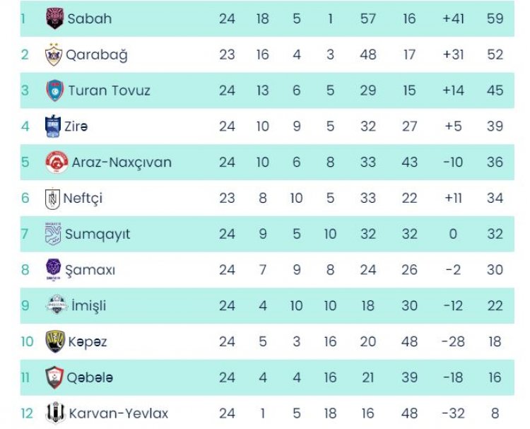 Futbol üzrə Azərbaycan Premyer Liqasında 24-cü tura yekun vurulub.