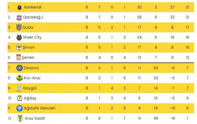 Xatırladaq ki, ötən gün Ağdaşda qalib gələn "Xankəndi" liderliyini qoruyub.